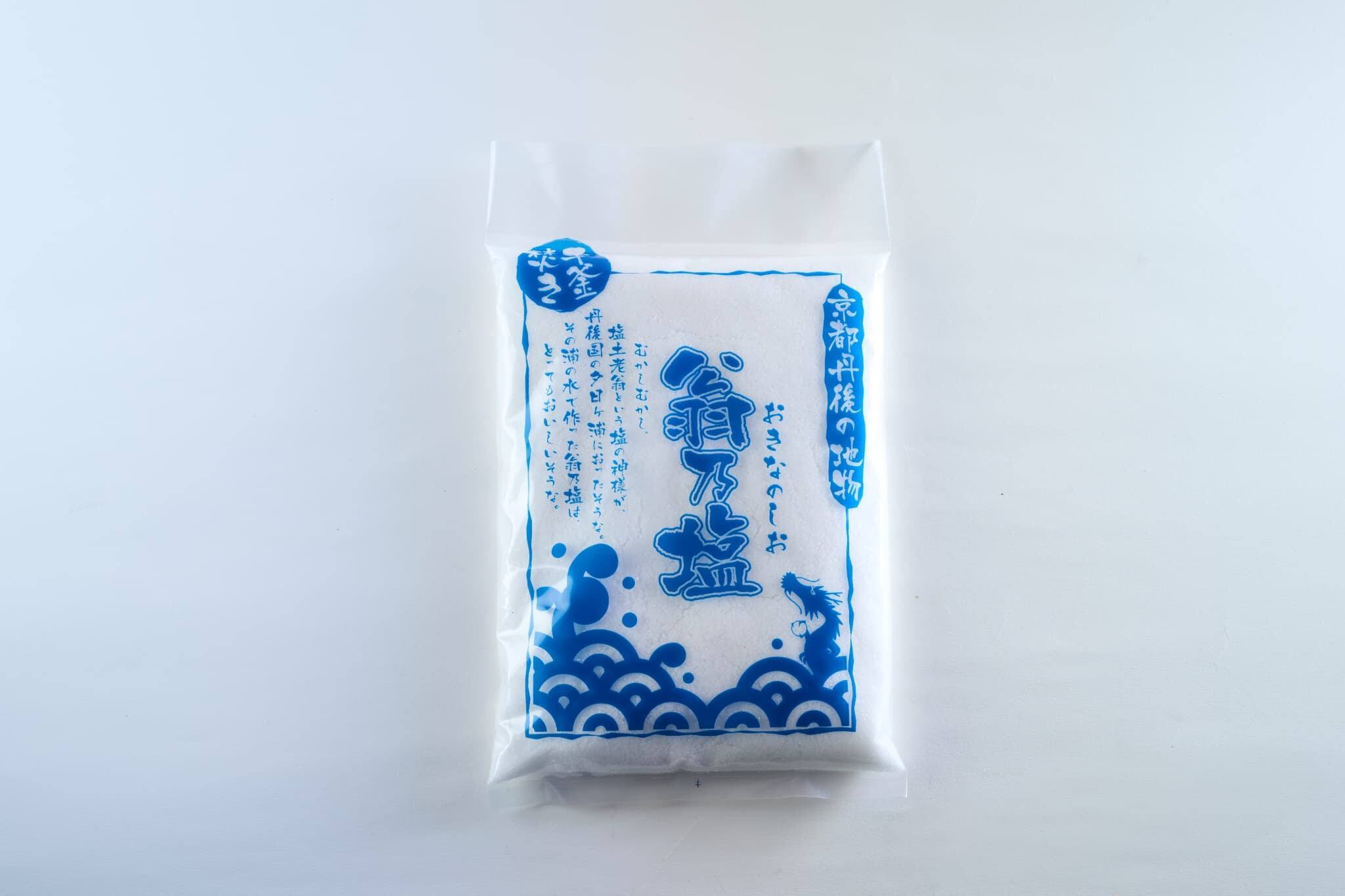 翁乃塩(おきなのしお)は、日本の美しい大自然が育んだ一品。網野町夕日ヶ浦から汲み上げた海水を使用し、大型の平釜でじっくりと4日間炊き上げました。そのため、まろやかで深い味わいが特徴です。