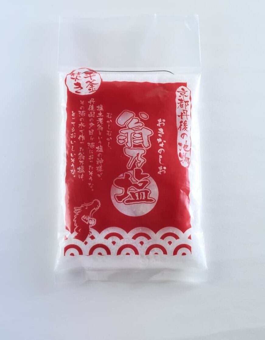 翁乃塩(おきなのしお)は、日本の美しい大自然が育んだ一品。網野町夕日ヶ浦から汲み上げた海水を使用し、大型の平釜でじっくりと4日間炊き上げました。そのため、まろやかで深い味わいが特徴です。